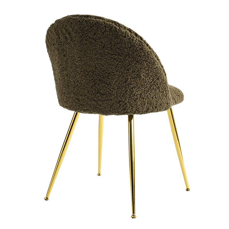 Jeho měkká plyšová fleecová tkanina poskytuje příjemný a hřejivý pocit, takže je vhodná pro použití v jídelnách, obývacích pokojích a ložnicích. Elegantní design židle se vyznačuje zlatou základnou, která dodává nádech půvabu a sofistikovanosti každému prostoru.